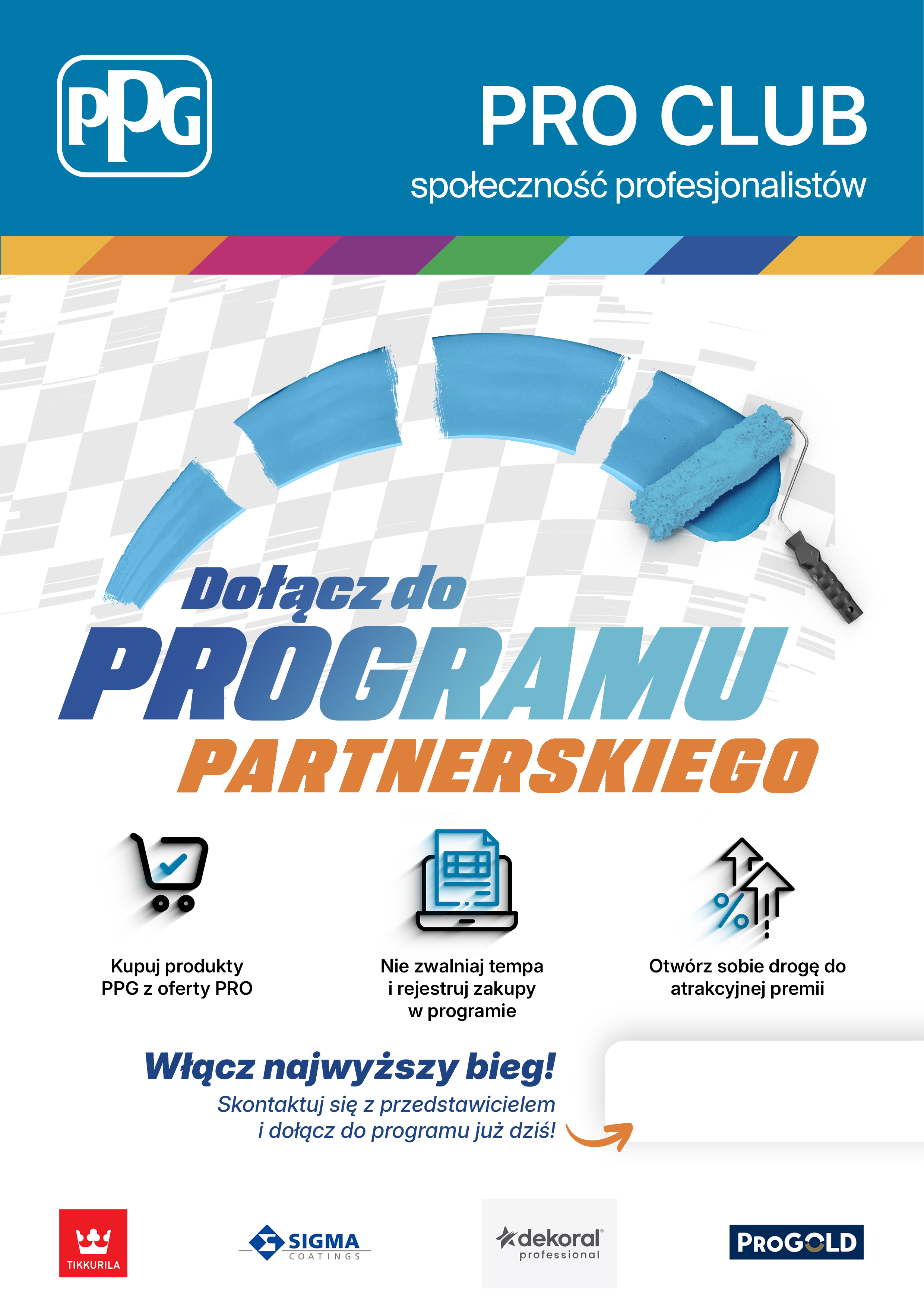 Wykonawco, dołącz do PPG PRO CLUB – programu partnerskiego dla profesjonalnych wykonawców. Każdy Twój zakup to 5% premii, którą masz pod pełną kontrolą.
